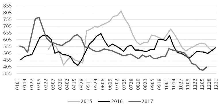 供需面悄然变化 [2017年“黑色系”行情回顾] 从全年的总数据来看,2017年1—11月统计局口径粗钢产量77798万吨,较2016年同期增4072万吨,预计全年增4200万吨左右。其中,电炉钢增产1200万吨,长流程钢厂通过提高烧结矿品位、增加转炉废钢用量等方法增产3000万吨左右。考虑到2017年取缔约6300万吨中频炉产量(该部分产量不在统计局口径内),全国粗钢总产量预计下降2000万吨左右。出口方面,2017年1—11月累计出口6996万吨钢材,预计全年出口7530万吨,同比2016年下降3368万吨。从粗钢总库存来看,预计2016年12月底至2017年12月底下降1000万吨。因此,预计2017年全年粗钢口径需求增加2600万吨左右,同比增加3.4%左右。 以下是我们对2017年市场分阶段进行分析和回顾。我们将通过供需的情况,展望下一年行情可能的演变路径。 第一阶段:2017年1月—3月,全产业链主动补库存,推高需求。从2016年的需求测算数据来看,真正粗钢需求爆发发生在2016年8、9月。从需求同比数据来看,9月明显上了一个台阶。在经历了2015年一年多需求萎靡的状态下,市场迎来了新的一轮需求周期。2017年一季度是典型的主动补库存而推高需求,导致价格的上行。 第二阶段:2017年3月—4月,全产业链主动去库存。2017年3月,国家出台房地产新政,国内一二线城市的采取限购限贷政策,因城施策在控风险与去库存基调下不断深化,房地产下行压力较大,一线城市步入了存量房时代,新房开发建设的市场空间也被不断压缩,二线城市过热的房价空间也将近透支,市场普遍预估房地产将会量价回调。一二线城市的销售量逐渐下降之后,市场开始对于钢材需求预期开始降温。从我们测算的粗钢需求来看,2017年1、2月需求同比增长10.58%,增幅较大。从下游的产销比来看,我们以汽车数据来举例,2月汽车产销比大幅增长,销量远不及产量,说明汽车库存走高。此外,当时的钢厂利润一路走高,截至3月初唐山螺纹钢现金利润已达700元/吨。随着利润的大幅增加,贸易商担心旺季后价格回调,在旺季开始加速出货,锁定利润。同时,电炉利润逐渐显现。市场当时认为后期或有3000万吨的电炉产能投产。市场对于需求预期转差,再加上库存补充较足,钢市在旺季出现了一波主动去库存的下跌行情,呈现厂库增加、社库下降的格局。 第三阶段:2017年5月—9月,需求维稳,库存快速下行,推高价格。旺季这一轮下跌持续到4月底之后,钢厂库存开始明显不足,螺纹钢开始出现缺规格的现象。从供应上看,中频炉取缔导致的螺纹钢货源紧缺开始逐步显现,库存下降的速度明显加快。从需求上看,国内螺纹钢的需求并没有预想的那么差。从Mysteel建材成交量来看,4月底开始全国建材的日成交量都在18—20万吨左右,北方和华东地区成交环同比都出现明显增加。