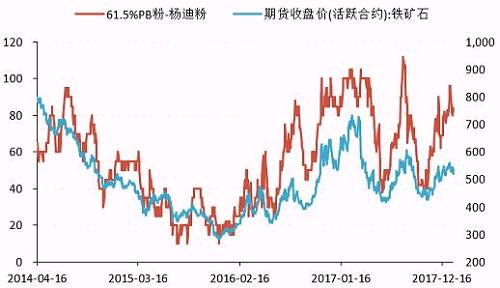 从铁矿石本身来看,利空点在于钢厂对铁矿的需求下滑,从烧结粉矿日耗可以看到一月份相对以往是在走下坡路的,而库存却在增加,虽然力度不及往年但一增一减下加剧了短期的供需矛盾,这是最重要的一点。
