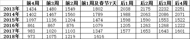 6年来春节前后社会钢材库存走势(单位:万吨)