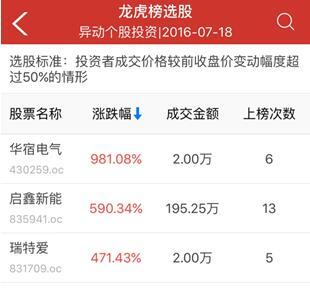 据悉,中国新三板APP本次新增的龙虎榜数据选股也是业内独有。该功能揭秘了每日异动股的主力动向(成交价、成交量、买卖双方账户名称及所在营业部信息),让主力资金无所遁形。同时,通过历史上榜次数,投资者还可以看出主力资金对个股炒作的热度。