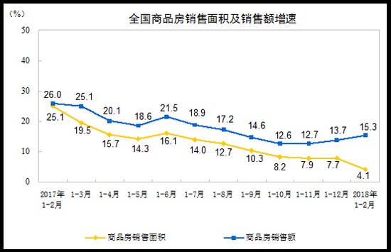 2018年1-2月份全国房地产开发投资和销售情况