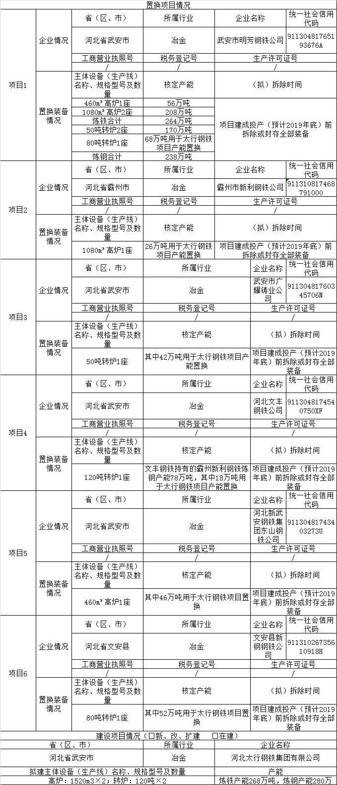 河北太行钢铁集团有限公司重组搬迁改造项目产能减量置换方案