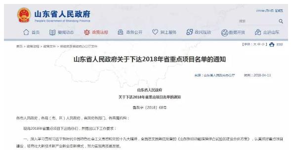 4月13日,山东省政府发布《关于下达2018年省重点项目名单的通知》。其中,共有2项与钢铁直接相关。