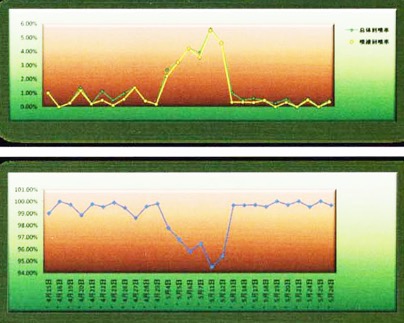 从现状调查的统计表中可以看到,从5月4日、5日开始, 回喷率有明显上升趋势,一直到5月11日达到顶峰。 5 月6日“喷漆工序活动小组”临时决定现场召开第三次会议,小组成员现场评审不合格出现的原因,并提出相应的对策。从此开始第二次会议决定的措施和对策实施、调整和验证工作。也是从5月6日开始,实施夏季喷漆临时操作要求。 在5月6日到5月11日之间,现场操作人员和小组成员针对事先草拟的“临时操作要求”进行实践和调整,最终形成“夏季喷漆操作三条”的操作要求,具体要求如下: 第一条:夏季喷漆粘度在按工艺执行的基础上略有调整,即:彩漆粘度30 0-2秒,黑漆粘度35 0-2秒,其他按工艺要求,压力调整到与年粘度适应。 第二条:漆罐中不存留较多数量的油漆,以大罐容量的2/3容量为宜。 第三条:下班后,消除漆罐中的所有油漆,第二天重新调配。 针对人员变动引起的暂时操作、配合生疏,小组决定进行现场的研讨,并对个别操作点进行改进,如为清理残漆方便,把原有水帘横管变成分体式(如图l所示);还有为拆卸方便制作高凳(如图2所示)等。另外还集中更换了压力表。 ![]() 图1 ![]() 图2 针对非喷漆因素的措施,则是对前、后序的要求。要求前序桶身擦拭尽可能的全面、无遗漏;要求后序在进行设备清理时尽可能的彻底,清理频次完全按照操作规程的要求执行,一般来说是每两周一次。 八、效果验证 效果验证明分为短期验证和长期验证两种。 短期验证 短期验证是采用措施实施后的一个工作周数据作为样本行进统计、分析,得出结果与目标对比。 截取5月4日到5月21日之间的数据做对比说明,趋势如下图所示: ![]() 措施前后回喷率对比趋势图一 η=(n/N)×100%=0.4% 另外,通过验证得知,小组所指定的措施和对策正在被使用,并且发挥着作用。回喷数量明显减少与此密不可分。 长期验证 长期验证是采用从措施实施到项目结束时的一段数据作为样本进行统计、分析,得出结果与目标作对比。 ![]() 措施前后回喷率对比趋势图二 η=(n/N)×100%=0.96% 九、项目总结 该项目从2014年4月15日立项开始,历时近半年的时间,先后经历了立项、启动、现状调查、原因分析、终于在生产和控制过程中找到相应的切入点和突破口,完成项目的预期目标。 |