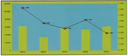 数据修正前后对比如下图所示: ![]() 从图中可以看出,开始进入5月份的时候。回喷率才凸显增高,而且修正前后的数据从趋势上没有明显变化,其他时间段均处在一个相对稳定的范围。 因此,“喷漆工序活动小组”决定:主要的数据分析的重点放在5月份的4日到12日之间的数据上. 四、目标确定 依据现状调查的统计结果,得出平均回喷率η: η=(n/N)×100% η——现状回喷率;n——现状回喷数量;N——产量 η=(n/N)×100%=1.30% 其中,针对5月4日至12日的回喷率为: η=(n/N)×100%=4.03% “喷漆工序活动小组”决定设定此次活动的目标是把回喷率降低到1.00%,围绕这一目标,小组成员开始展开目标可行性分析、原因分析、改进措施及落实等工作。 “喷漆工序活动小组”依据日常排产数盘、以往数据,如生产量、生产能力、年度计划等,分析制定目标的可行性。分析过程如下: (一)核算年均日产量 H01:我厂制桶生产线生产能力:80000只/年 按27个工作日/月(含加班)核算日产量:(800000 /12)/27= 2469(只) H02:我厂日排产经验:一般有1800只、2700只、3300只三个常用数量,其中前两个数字较常用,最后的数字只在销售旺季出现,假设比重约为40%、40%、20%,一次作为加权核算年均日产量如下: 1800×40%+2700×40%+3300×20%=2460(只) 因此,年均日产量约为2500只。 (二)核算喷漆工位回喷桶数量 同样采用2010年4月15日到5月26日之间的数据样本,得出日均回喷桶发生数量约为36只/日,修正后的回喷数盘约为20只/日。 (三)核算回喷率 回喷率η=(日均回喷数量/年均日产量)×100%=0.8% 按照这个假设推算得出的目标值,远远高出我们预计的目标值。也就是说,经过初步的可行性分析得出,我们能够都达到预定目标,只不过在这里一定要剔除非喷漆因素的影响,在现场分析时,也必须同时考虑非喷漆因素的影响。 五、原因分析 “喷漆工序活动小组”第二次会议是一次关键性的会议。这次会议充分利用了27个工作日的数据,不但确定了本课题的目标,并且对目标的可行性进行了分析,而且还对所采集的数据样本,做了详细的分析。 其第一次分析结果如下: 喷漆回喷桶不符合情况柏拉图