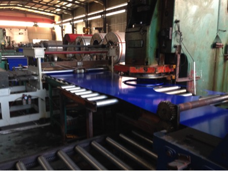 开卷后的彩涂桶身板 2、彩涂钢板桶的生产工艺 彩涂板由于表面有油漆,其生产工艺与目前我们生产热镀锌板是一样的。而且彩涂板厂目前可为钢桶行业涂出钢桶专用板,即桶身1.2×927×C;桶底顶板1.2×1250×C,每吨彩涂价格与钢板厚度有关。随着厚度越厚,彩涂加工费越高,越薄越便宜。因为厚料彩涂时需要的动力大,料的运行速度慢,每小时涂布的料少。 生产工艺: 桶底顶:开卷→校平→桶底顶冲压(桶身下料)→底盖预卷喷胶→堆码; 桶身:磨边(铣边)→卷圆焊接→试漏→焊缝补涂烘干→翻边预胀→压筋压线→封口→试漏→堆码。