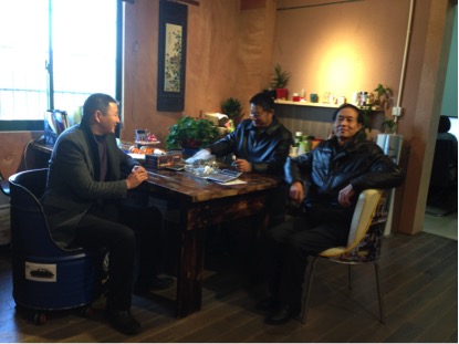 奥斯派克黄总(右一)和英联邦张总(左)坐下来感受新产品的舒适度