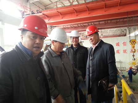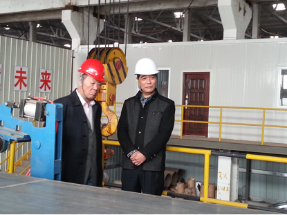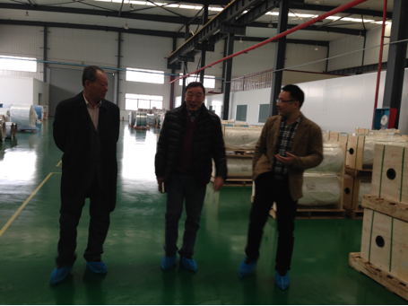 公司CEO蔡世雄、生产主管及业务经理陪同张秘书长参观印涂生产线