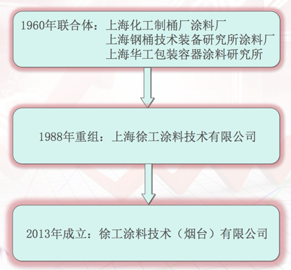 我公司的主要涂料技术成果如下: 1962年2月:研制成功X-622EPF钢桶内涂料。是当时国内第一个钢桶专用内涂料,通过了SGS和德国莱茵技术监护国际认证;通过了美国FDA和欧盟食品用涂料标准认证。1989年1月研制成功X-891PCU钢桶涂料,是目前国内钢桶涂料中唯一的专利产品,也是目前国内唯一出口的常温固化型钢桶涂料。后又研制成功X-362PVP涂料,是目前国内唯一用于钢桶内涂的酚醛涂料,也是目前国内出口量最大的钢桶用酚醛内涂料。 上海徐工涂料技术有限公司利用原有的涂料生产设备和两个研究所的技术资源,调集工程技术人员不断研发各种新型、多功能的钢桶专用内外涂料。徐工涂料技术(烟台)有限公司,成立于2013年,是我国第一个专业钢桶涂料生产研制基地。基地成立一年多,就研制成功了热镀锌钢桶专用的焊缝涂料、钢桶水性涂料。